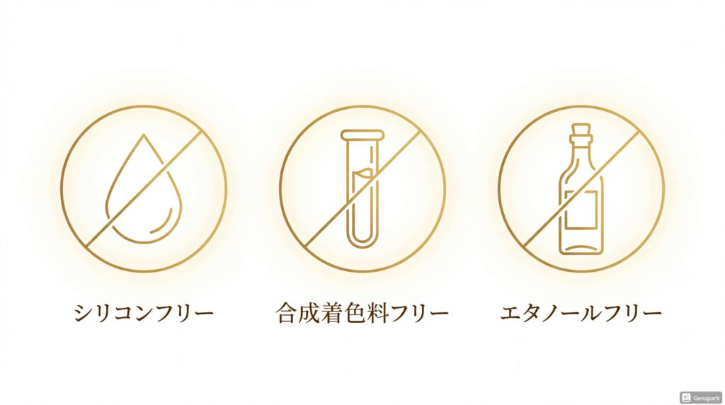 • ラウレス硫酸Na、鉱物油、合成着色料、エタノール、シリコンを排除。