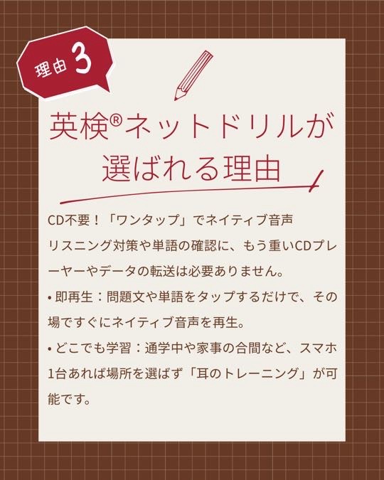 「その悩み、英検®ネットドリルがすべて解決します。」