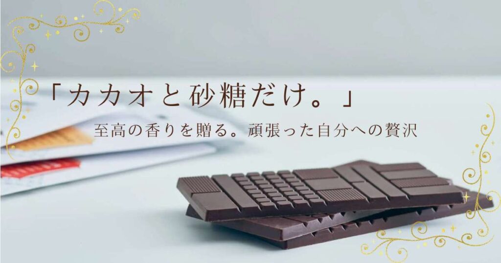 カカオと砂糖だけで描かれる、驚きに満ちた新しい体験。 それは、美味しいという満ち足りた感情だけでなく、「自分のためにこんなに素敵なものを選んでくれた」という記憶として、長く心に残り続けるはずです。