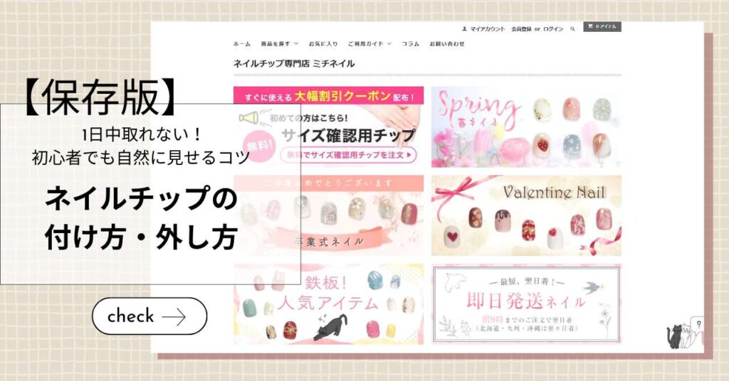 粘着グミや両面テープの使い分け、さらには「サイズ選び」で失敗しないコツまで網羅。記事の後半では、SNSでも話題のプロ制作によるネイルショップもご紹介します。